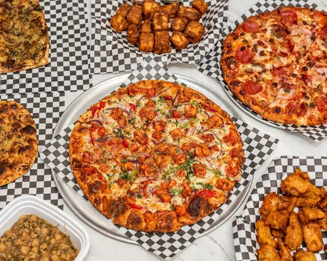 We specialize in stone-oven-baked pizzas. Our menu features signature pizzas like Die Hard Meat Lovers and Loney Pepperoni, Indian-style pizzas like Tandoori Chicken and Butter Chicken Pizza, plus poutine, chicken wings, cheesy stuffed garlic bread, and combo deals.